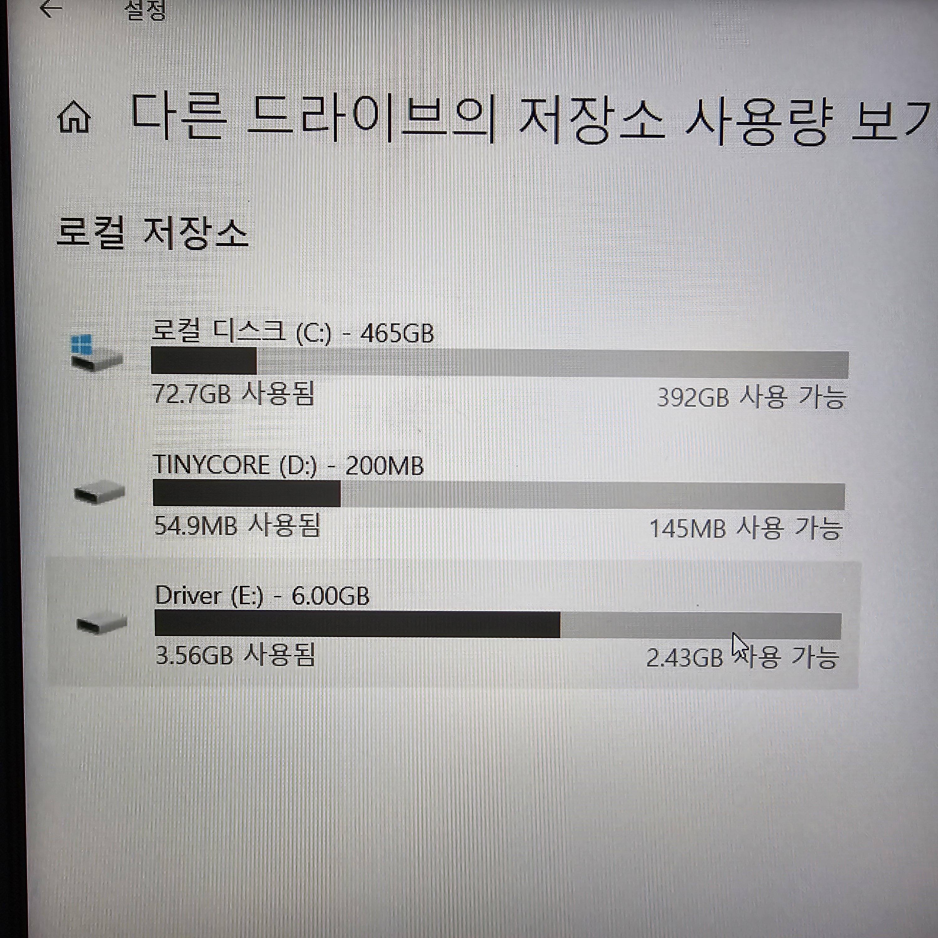 업그레이드되면서 풀어낸 SSD라 파티션이 나눠져 있네요..
